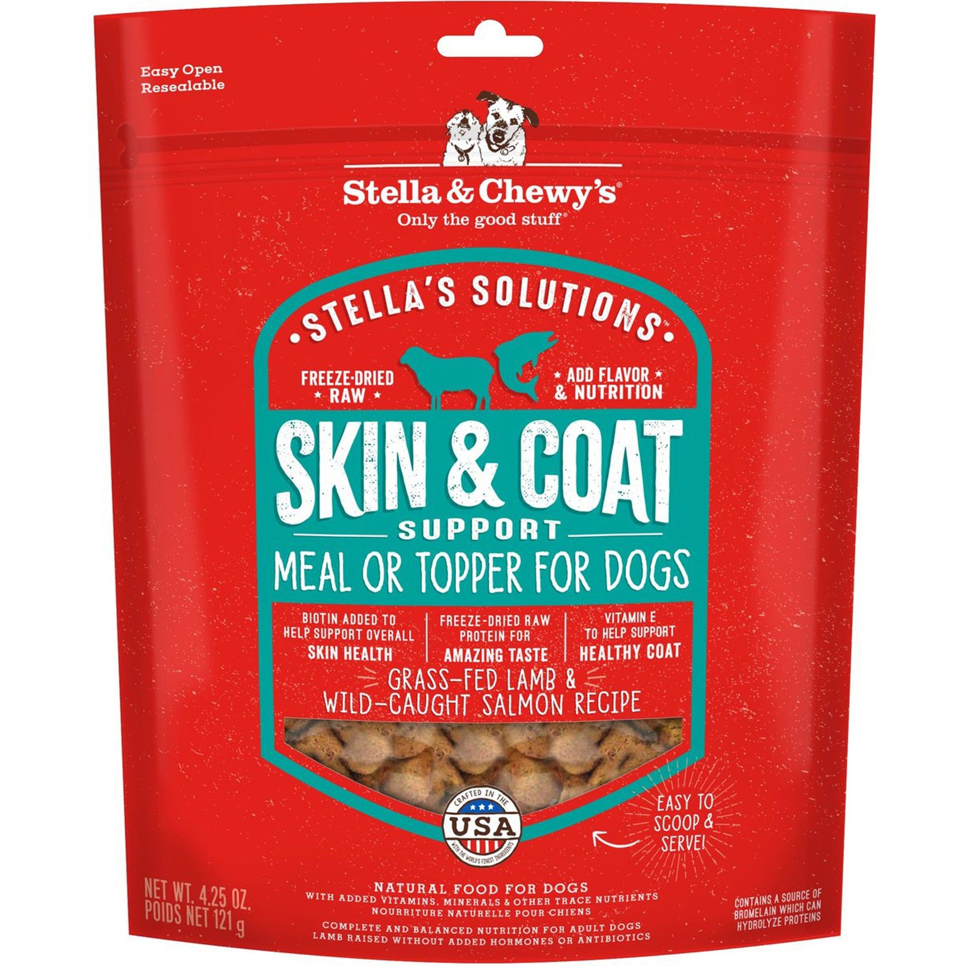 Stella & Chewy’s Solutions Freeze-Dried Raw Dinner Morsels – Skin & Coat Support Lamb & Salmon Recipe (4.25 oz Bag)